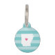 Dejen que su amigo muestre algo de orgullo del estado de casa con esta linda etiqueta de identificación de Arkansas. El diseño presenta un mapa de silueta blanca del estado de Arkansas con un corazón rosado en el interior, sobre un tono de fondo turquesa de rayas. Añada el nombre de su mascota y la información de contacto a la parte posterior con letras blancas en un fondo acuático.