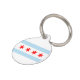 Acaricie la etiqueta con la bandera de la ciudad de la bandera rayada de Chicago (la ciudad más grande en Illinois), blanca y azul clara con cuatro estrellas rojas