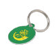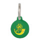 Etiqueta de mascotas con diseño con una bandera del histórico condado de Huntingdon, en Inglaterra, Gran Bretaña; bandera verde con un cuerno de caza con cinta dorada