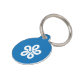Etiqueta de identificación de mascotas con un diseño con la bandera de la prefectura de Fukuoka en Japón (福 岡 県 , Fukuoka-ken), una bandera azul con un símbolo blanco
