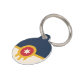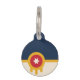 Etiqueta de mascotas con un diseño con la bandera de Tulsa, Oklahoma. Bandera beige y azul marino con un escudo Osage dorado que contiene un círculo rojo y una estrella beige de seis puntas