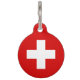 Etiqueta de perro con bandera suiza para cualquier comida suiza. Perfecto para los perros de montaña de Bernese o San Bernardo.