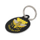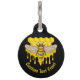 Abeja de miel con alas abiertas icono sobre colmena de abejas y gotas de miel. Color de fondo personalizado. Texto personalizado en ambos lados.