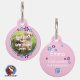 Liebevoll gestaltete rosa Hundemarke - verziert mit einer Umrandung aus kleinen Blumen in in blau und lila - personalisierbar mit dem Foto deines geliebten Haustieres auf der Vorderseite und auf der Rückseite kannst du wichtige Daten hinterlegen, wie den Namen deines Hundes, Telefonnummer und Ort, auch eine besondere Geschenkidee für Hundebesitzer