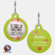 Liebevoll gestaltete grüne Haustiermarke - verziert mit einer Umrandung aus kleinen Blumen in in blau und lila - personalisierbar mit dem Foto deines geliebten Haustieres auf der Vorderseite und auf der Rückseite kannst du wichtige Daten hinterlegen, wie den Namen deines Tieres, Telefonnummer und Ort, auch eine besondere Geschenkidee für Haustierbesitzer.