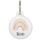 Una etiqueta mascota personalizada con un nombre en la parte delantera y el número de teléfono en la parte posterior. Diseñado con un bonito y elegante ilustracion arcoíris. Los tonos rosa pastel y el purpurina de oro falso componen este bonito y pequeño diseño de arco iris.