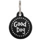 Esta placa de identificación de la ronda ofrece las palabras, "buen perro" en blanco en un fondo negro. ¡Completamente adaptable! Añada su parte posterior personal del Info encendido, o suprímala si está deseado.