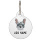Si a tu amado bulldog francés le gusta vagar, asegúrate de que tienen una de estas etiquetas de identificación de perro en funda que se pierden. Esta etiqueta de perro para los franceses tiene un lindo ilustracion de una cara de bulldog francesa azul con espacio para agregar el nombre de tu perro en la parte delantera y los detalles de contacto en la parte posterior. Se pueden cambiar el color del texto y el estilo de fuente. La etiqueta de identificación de bulldog francés de merle azul está disponible en diferentes tamaños.
