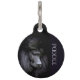 Añada sus propios detalles a esta etiqueta de la identificación del mascota que ofrece un caniche estándar negro hermoso.