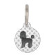 El original ilustracion personalizado de Destei de un lindo color negro de abrigo Toy Poodle raza perro. El fondo tiene un patrón de huellas de perros grises. En el otro lado hay áreas de texto personalizables para un nombre y un número de teléfono.