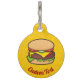 Ilustracion personalizado Cheeseburger. Iconos de contorno de comida basura fondo de patrón amarillo. Texto personalizado en ambos lados.