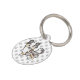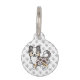 El original ilustracion personalizado de Destei de un dulce de chocolate largo abrigo de raza Chihuahua. El fondo tiene un patrón de huellas de perros grises. En el otro lado hay áreas de texto personalizables para un nombre y para el número de teléfono del propietario.
