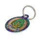 Insignia escudo de Clan Hamilton rodeada de una correa y hebilla sobre fondo escocés de caza. Texto personalizado en ambos lados.