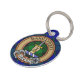 Insignia escudo del clan MacKay rodeada por una correa y hebilla sobre fondo tartán. Texto personalizado en ambos lados.