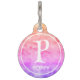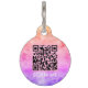 ¡Un lindo y colorido canela rosa para tu perro o gato! En el reverso se incluye un código QR personalizado para que la gente pueda acceder fácilmente a la información para que su mascota vuelva a estar seguro y sonar. Personalizar con su URL y su nombre y monograma de mascota. Deja que tu mascota muestre un estilo con este divertido diseño de gradiente color arcoiris rosado.