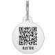 Ideal para la seguridad de su mascota. Permita que otros escaneen su código QR Con sus teléfonos móviles para averiguar su número de contacto o un enlace a usted. Reemplace la imagen con su propio código QR cargado. Agregue el nombre de su mascota. Hay varios sitios web que permiten crear y descargar códigos QR gratis. Se pueden crear códigos QR para sitios web, correos electrónicos, Wifi, tarjetas virtuales y muchos otros usos. Un ejemplo es https://www.qr-code-generator.com