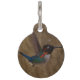 Fotografía de un mediados de vuelo del colibrí contra un fondo oscuro.