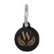 Un fondo negro estilizado decorado con una corona clásica. Personalice y agregue la inicial del monograma de la mascota. Agregue su número de teléfono en la parte posterior. Letras de color dorado.