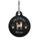 Prepárate para el gran día de tu amado perro, como miembro honorario de la fiesta de bodas de la novia, cuando él o ella entrega a sus humanos honrados para el matrimonio. Este diseño de etiquetas de perro presenta un shibu inu sobre un fondo negro con bonitos ramos de flores blanquecinas cremosas. El diseño es el mismo en ambos lados, con escritura crema. Escriba el nombre de su perro en la sección Personalizada. Si quieres una frase diferente además de "Perro de honor", como "Mejor perro" o "Perro de flores", o "Perro de Groom", tipea eso en lugar de "Perro de honor".