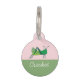 Esta etiqueta de identificación mascota muestra un alegre juego de críquet verde contra un suave fondo rosa y verde sabio, complementando la naturaleza lúdica de la etiqueta. El área para personalizar está claramente designada, lista para ser personalizada con un nombre de mascota en una fuente fluida y fácil de leer. La etiqueta combina el encanto desenfadado con la practicidad, asegurando que un mascota pueda ser identificado con estilo.