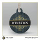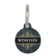 Viste a tu perro o gato con estilo con esta elegante etiqueta de identificación para mascotas que presenta un patrón clásico de cuadros escoceses negro y gris con un emblema dorado y texto personalizable. Agrega el nombre de la mascota en la parte delantera y el número de teléfono en la parte posterior para crear un regalo único para ti, nuevos dueños de mascotas o amantes de los animales.