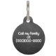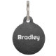 Una etiqueta falsa de mascota de cuero negro con espacio para el nombre de su mascota y su número de teléfono u otra información de contacto.