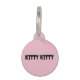 Etiqueta de identificación para gatos y perros con plantilla de texto personalizable tipografía Kitty Kitty e impresa con un dibujo de silueta de gato negro al acecho de Halloween obra de arte gráfica dibujada a mano diseño ilustración de TheFabricSeal tienda de impresión bajo demanda en Zazzle.com #ZazzleMade ©️Original. https://www.zazzle.com/store/thefabricseal