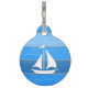 Diseño de temática náutica con decoración de velero sobre fondo azul rayado y gris de madera. Tenga en cuenta que esto no está hecho de madera, es una impresión gráfica de madera.