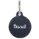 Pet tag with a personalized dog name monogram in a cute script font on the front with your address and phone number in a serif font on the back. The background on both sides is a pattern featuring digitally hand-drawn dog constellations paired with ditsy stars on a black background. Check out our store for more matching items from this collection.