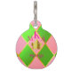 Placa Redonda de Mascota Estilo Argyle Rosa y Verde con Detalles Dorados Monogramada