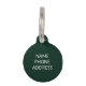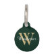 Minimalista elegante, simple dorado, blanco y negro personalizado verde pino monograma inicial, nombre de letra y guión, o apellido, apellido, nombre de familia gato perro personalizado Etiqueta de identificación de mascota. puede personalizar de la parte delantera: con la letra y el nombre iniciales y la parte posterior: con nombre, teléfono, dirección, número de identificación del seguro del Mascota o cualquier información importante