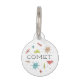 Dale a tu amado mascota un toque de encanto retro con nuestra etiqueta de identificación de mascotas de la era atómica moderna de mediados de siglo. Diseñado para el discreto propietario del mascota que aprecia la estética de antaño, esta etiqueta presenta una deliciosa variedad de formas atómicas y geométricas fijadas en un fondo blanco puro, coronada con el texto en negrita del personalizable donde está "COMET". No sólo es esta etiqueta un guiño a la era de la era espacial, sino que también está construida para durar con un sólido anillo metalizado asegurándose de que se mantenga conectado de forma segura al collar de tu mascota. Práctico, elegante y divertido, esta etiqueta de identificación mascota es una manera ideal de mantener a su mascota a salvo mientras celebra el encanto atemporal del diseño de mediados de siglo.