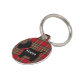 Etiqueta de identificación del perro escocés rojo oscuro de tartán.