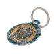 Bandera escudo Campbell rodeada de una correa y hebilla sobre el fondo escocés de la ropa. Texto personalizado en ambos lados.