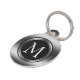 Elegantes círculos monocromáticos metálicos de color gris plateado y negro. Al otro lado están el nombre y el número de teléfono