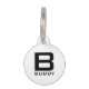 Etiqueta de mascota personalizado blanco y negro para perro o gato pequeño. Etiqueta personalizada de collar redondo con información perdida y encontrada, nombre del mascota y número de teléfono. Una forma sencilla de ayudar a recuperar a su mascota perdido. Añade tu propia letra inicial y colores. Plantilla moderna de tipografía. Buena idea de regalo para el nuevo propietario del mascota, amante del gato, caminante del perro, etc. También disponible en grandes dimensiones para animales grandes.