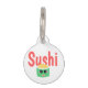 Sushi Suzie es una pieza maki de sushi. Algas nori en el exterior, arroz en el interior. Esta etiqueta de mascota sería perfecta para el gatito amante de los peces en casa.