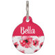 Asegúrese de que su mascota está a salvo con esta etiqueta de identificación personalizada (ID). Esta etiqueta presenta una divertida y brillante impresión de amapola en vibrantes tonos rosas.