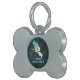 Esta placa de identificación de mascota con forma de hueso tiene un fantasma de dibujos animados lindo con una cara divertida que lleva un sombrero de copa azul y sostiene un bastón negro coronado con una calavera dorada flotando en un cielo nocturno oscuro con estrellas diminutas. Personaliza el nombre y tu número de teléfono con la plantilla.
