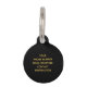 Elegante marco de color amarillo dorado con flor de cerezo y placa de identificación personalizada para tu hermosa mascota. La parte posterior de la placa contiene varias líneas de texto personalizable con tu dirección de correo electrónico, número de teléfono y otra información de contacto. Mantén a tu preciosa mascota segura mientras luce linda y femenina. La encantadora ilustración de flor de sakura en acuarela y la delicada letra se combinan con una combinación de colores rosa, negro y dorado para crear un estilo sofisticado.