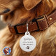 Liebevoll gestaltete Hundemarke verziert mit einer Umrandung aus kleinen Pfötchen in braun - personalisierbar mit dem Foto deines geliebten Haustieres auf der Vorderseite und auf der Rückseite kannst du wichtige Daten hinterlegen, wie den Namen deines Hundes, Telefonnummer und Ort, auch eine besondere Geschenkidee für Hundebesitzer