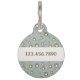 Placa identificativa para mascota con el nombre personalizado de la mascota en una fuente de letra cursiva en el frente y con su número de teléfono en una fuente serif en el dorso. El fondo en ambos lados es un patrón que presenta galletas con huellas de pata y gotas de azúcar. Visite nuestra tienda para ver más artículos de esta colección.