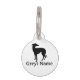 Esta versión presenta un texto negro en gris y negro. También se puede encontrar una versión en blanco y en galgo aquí: https://www.zazzle.com.au/greyhound_id_standing_greyhound_white_on_black_pet_tag-256093711168567541