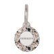 Esta peculiar etiqueta de identificación de perro inspirada en terrazo es para crías con energía de personaje principal. Con chips dispersos de rubor, oro, carbón vegetal y gris polvoriento, está dando arte moderno que se encuentra con las vibraciones de los bocadillos de la acera—de la manera más elegante posible. Perfecto para los perros que se deslizan en el parque como si fuera una pista de aterrizaje.