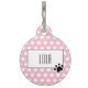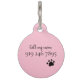 ¡Asegúrate de que nunca pierdas a tu bebé! Este diseño presenta una tira de puntos de polka rosa y blanco muy linda con una pata, con texto de personalizable. Simplemente cambie el texto de la plantilla al nombre de su perro. En la parte de atrás dice "Llama a mi mamá" con número de teléfono personalizado. Todo el texto es editable y los colores pueden cambiarse a los que desee.Todos los estilos de texto, colores, tamaños se pueden modificar para adaptarse a sus necesidades