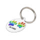 Huellas de perros de dibujos animados con colores arcoiris. Todo lo que se ve está impreso. No se utilizará ningún relieve real en el proceso. Edite el nombre en la parte delantera y el número de teléfono en la parte posterior para que estas etiquetas de identificación se personalizen.