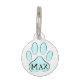 La huella de pata azul del perro. Etiqueta mascota de diseño original.