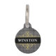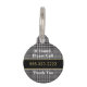 Vestir a su perro o gato con estilo con esta elegante etiqueta de identificación mascota que presenta un patrón clásico de manto de vidrio negro y gris con un emblema dorado y texto de personalizable. Agregue el nombre de un mascota en la parte delantera y el número de teléfono en la parte posterior para crear un regalo único para usted, nuevos propietarios de mascotas o amantes de los animales.