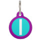 Esta etiqueta redonda del mascota del monograma ofrece una letra minúscula gráfica L inicial en un fondo de la púrpura y del azul de la aguamarina. ¡Completamente adaptable! Añada la parte posterior personal del Info de su perro encendido, o suprímala si usted prefiere.