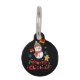 Esta alegre ilustración navideña presenta un adorable muñeco de nieve que lleva sombrero y bufanda sobre un fondo negro sólido. Rodeada de campanas, copos de nieve y un hombre de jengibre, la imagen destaca el audaz saludo rojo y verde "¡Feliz Navidad!" en la parte inferior, lo que la convierte en un diseño estacional vibrante y dulce.